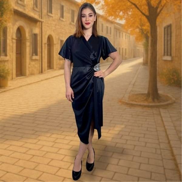 ✔ Visok pas z okrasnimi gumbi – poudari silhueto in doda piko na i